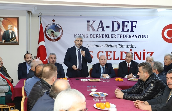 KA-DEF Genel Başkanı Bayram Erişgin bu ziyaretlerin karşılıklı olarak daha sık yapılmasını arzu ettiklerini söyleyerek: " Biz federasyonumuza üye 65 dernekle bölgemizin büyük ve etkin sivil toplum kuruluşlarından birisiyiz. Ortak akılla hareket eden bir mekanizmamız var. Nerede Memleketimizin yararına bir şey varsa biz de orada oluruz. Biz bu şehre gönül verdik. Şehrimizin sorunlarıyla ilgili olarak karşılıklı istişareden yanayız. Her konuda düşüncemizin alınmasını istiyoruz. Daha fazla biraraya gelerek birlikte çözüm üretmekten yanayız. Federasyonumuza yapmış olduğu ziyaretten dolayı AK PARTİ İl Başkanı Sn. Ersan Aksu'ya KA-DEF adına teşekkür ediyorum" diyerek konuştu.