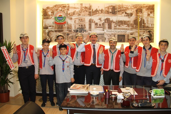Çanakkale Milli Bilinç Kampından dönen Samsun' lu izciler ayaklarının tozlarıyla İlkadım Belediye başkanı Erdoğan Tok' u ziyaret ederek kamp ve 57. alay yürüyüşü hakkında bilgi verdi.