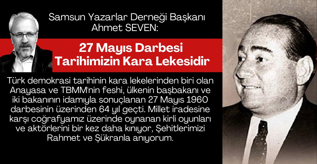 Samsun Yazarlar Derneği Başkanı Ahmet Seven 27 Mayıs darbesiyle ilgili bir mesaj yayınladı.