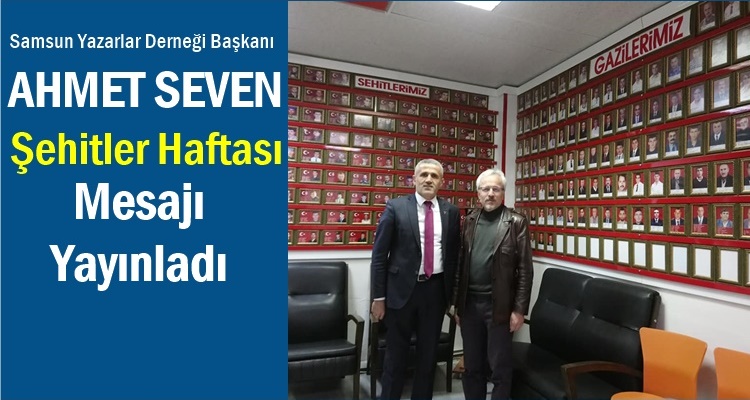 Samsun Yazarlar Derneği Başkanı Ahmet Seven: '14-20 Nisan' da başlayan Şehitler Haftasında Bu Cennet Vatan için canlarını feda eden Aziz Şehitlerimizi Rahmetle anıyor, gazilerimize uzun ömürler diliyorum' diyerek konuştu.