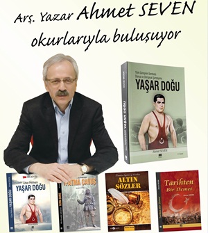 Samsun yazarlar Derneği Başkanı Arş. Yazar Ahmet Seven, Türk Güreşinin Sembolü Yaşar Doğu'nun tüm yönleriyle hayatını anlattığı kitapla birlikte ülkemizin çeşitli İl ve İlçelerine davet edilerek konferanslar veriyor.
