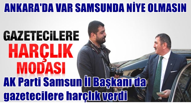 Ak Parti Samsun İl Başkanı Fuat Köktaş, Samsun Büyükşehir Belediyesi'ndegerçekleşen bayramlaşma törenini takip eden gazetecilere 40'ar lira bayram harçlığı dağıttı. AK Parti İl Başkanı Fuat Köktaş, Büyükşehir Belediyesi'nde gerçekleşen halk, kamu kurum ve kuruluşlarla bayramlaşma töreninin ardından belediye çıkışı otomobiline bindiği sırada bir gazeteci tarafından kendisine espri olsun diye Başbakan Recep Tayyip Erdoğan'ın bayram namazı sonrası bir basın mensubuna bayram harçlığı verdiği hatırlatıldı. Bunun üzerine aracından inen Köktaş, bayramlaşma törenini takip eden gazetecilere 40'ar lira bayram harçlığı dağıttı.