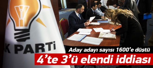 Bir haftadır süren mülakatlara ilişkin Hürriyet'in AK Parti kaynaklarından edindiği bilgiyegöre, "Temayüle katılanların tamamına yakınını mülakata çağırdık. Yüz yüze yapılan bu görüşmelerle aday adayı sayısı 1500-1600'e düşürüldü" dedi.