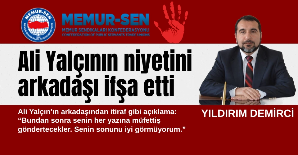 Ali Yalçın’ın niyeti, arkadaşının beyanlarından da anlaşılacağı üzere, sendikanın örgütsel gücüyle kamu nüfuzunu orantısız bir şekilde kullanarak, göreviyle ilgili olmayan, sendikanın bazı uygulamalarına eleştirel yazılar yazan kurucu üye, Pendik İlçe Milli Eğitim Müdürlüğünde Şube Müdürü olarak görev yapan Yıldırım Demirci’nin yöneticilik görevini üzerinden aldırmaktır.