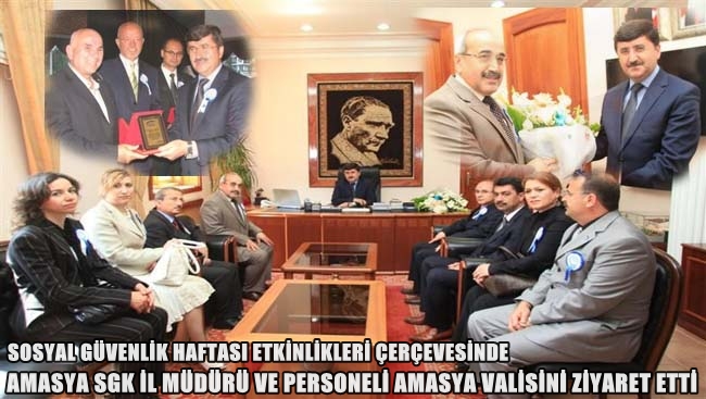 SGK Amasya İl Müdürü Ömer Eker beraberindeki kurum personeli SosyalGüvenlik Haftası nedeniyle Amasya Valisi A. Celil Öz'ü makamında ziyaret etti.