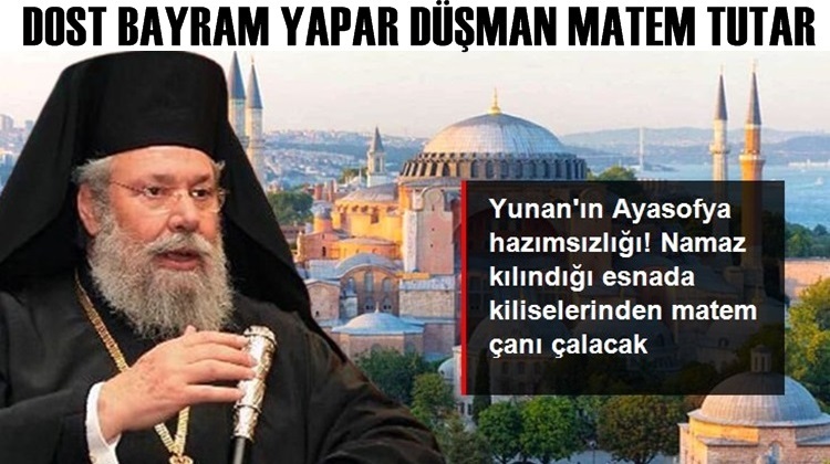 Ayasofya'da saatler sonra Cuma namazı kılınacak ve böylelikle 86 yıl sonra ilk kez ibadete açılmış olacak. Ayasofya'nın ibadete açılmasını hazmedemeyen Yunanisten ise ilginç bir protestoda bulunacak. Yunanistan'ın Mora'da Patra kentinin kiliselerinde matem çanları çalacak.