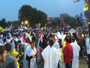 Akşam saatlerinde başlayan yağmura rağmen meydana toplanan vatandaşlar akşam namazı kıldı. Namazın ardından Mısır'daki Müslümanlar için dua eden grup idam cezasına tepki gösterdi.