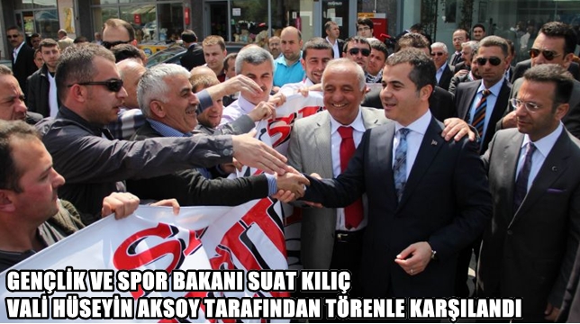 Çeşitli etkinliklerde bulunmak üzere karayolu ile ilimize gelen Gençlik ve Spor Bakanı Suat KILIÇ,karşılama töreninin ardından Vali Hüseyin AKSOY ile bir süre sohbet etti