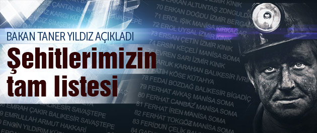 AFAD, Soma'da yaşamını yitiren işçilerin isimleri ve memleketlerini açıkladı. İşte AFAD'ın açıkladığı Türkiye'nin yüreğine ateş düşüren o kara liste;