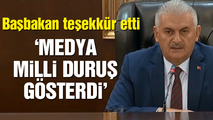 15 Temmuz'daki darbe girişimi sonrası Bakanlar Kurulu, Başbakan Binali Yıldırım başkanlığında bugün toplandı. Çankaya Köşkü'nde gerçekleştirilen toplantıda, darbe girişimi ve Fethullahçı Terör Örgütü (FETÖ) ile mücadele operasyonları masaya yatırıldı. Toplantısı sonrası açıklamalarda bulunan Yıldırım darbeye karşı gösterilen demokrasi yanlısı tutum için Türk medyasına teşekkür etti.Yıldırım "Bir başka teşekkürüm Türk medyasıdır. Böylesine olağanüstü bir durumda Türk milletine yakışırı Türkiye Cumhuriyeti'nin değerlerine yakışır bir yayın anlayışı ile darbenin asla ve asla meşruiyet kazanamayacağını ve bunu Türkiye'nin geleceğine darbe olduğu tezinden hareketle çok milli bir duruş gösterdiler. Bunu için de bütün medya kuruluşlarına teşekkür ediyoruz" dedi.