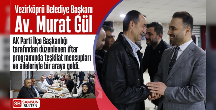 Vezirköprü Belediye Başkanı Av. Murat Gül, AK Parti İlçe Başkanlığı tarafından düzenlenen iftar programında teşkilat mensupları ve aileleriyle bir araya geldi. Ramazan’ın bereketinin paylaşıldığı gecede birlik ve beraberlik mesajları verildi.