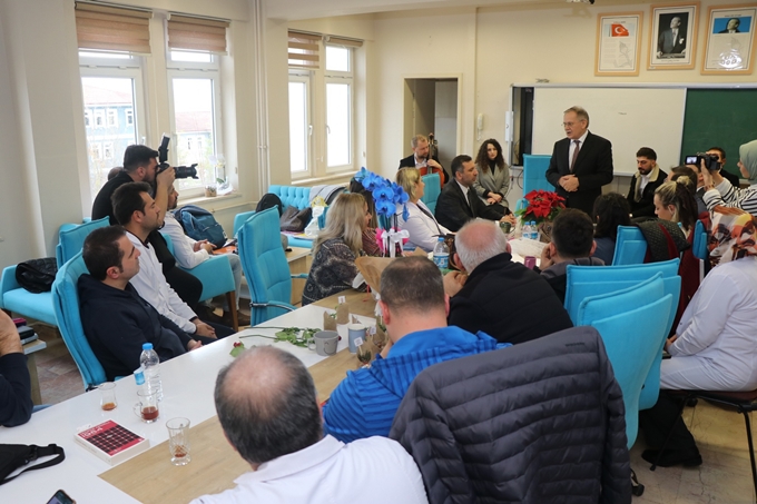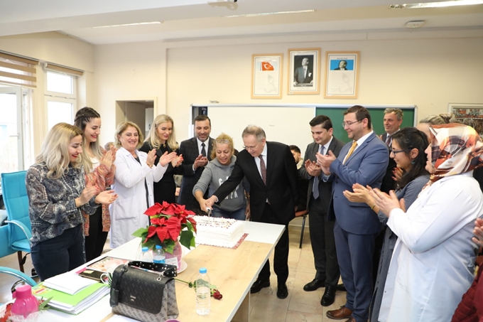 Büyükşehir Belediye Başkanı Mustafa Demir, Kaymakam Faruk Atar Belediye Başkanı İbrahim Sarıcaoğlu ve İlçe Milli Eğitim Müdürü Orhan Büyük ile Rıdvan Çelikel Fen Lisesini ziyaret ederek öğretmenlerle birlikte pasta kesip 24 Kasım Öğretmenler Gününü kutladı.