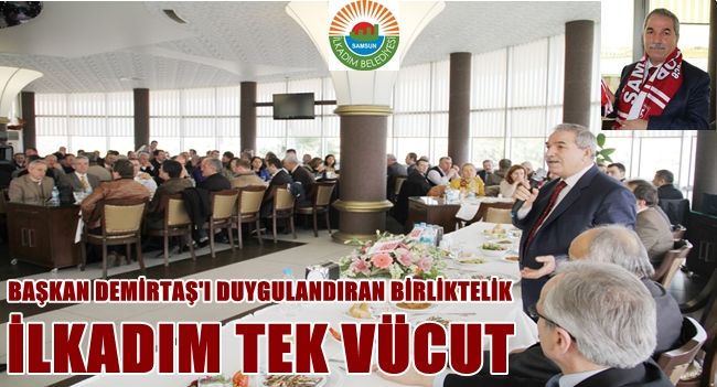 Onuruna verilen yemekte konuşan İlkadım Belediye Başkanı Necattin Demirtaş, Tüm çalışanların eksiksiz olarak katılım sağladığı programda özlenen bir tabloyu gördüğünü ve çok duygulandığını ifade etti. Göreve geldiği günden bugüne tüm çalışanların aidiyet duygusuna sahip olması gerektiğine vurgu yaptığını ifade eden Demirtaş, " Bugün burada çok güzel bir birliktelik sağlamışsınız. Bu birliktelik beni oldukça duygulandırdı. Sizin bu güçlü birlikteliğiniz olduğu müddetçe hizmetteki kalitemiz daha da artacaktır." dedi.