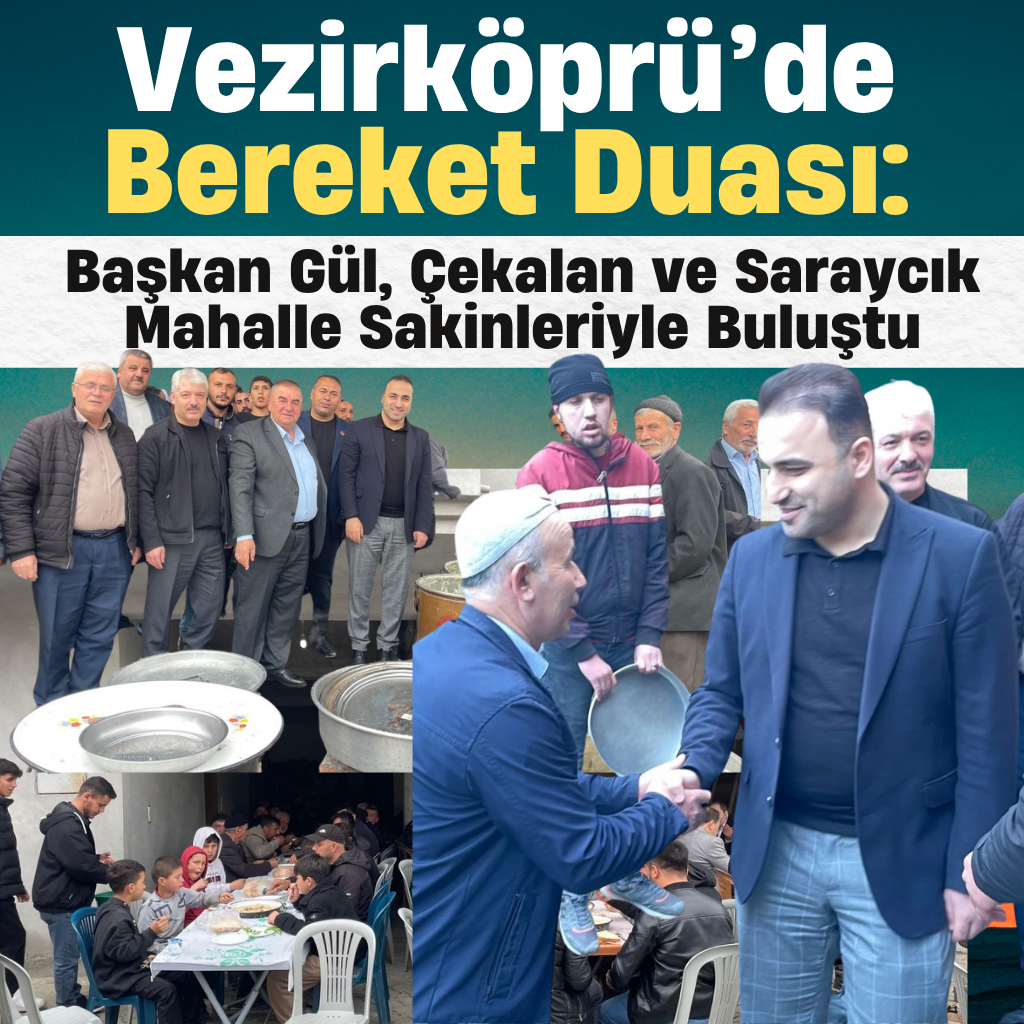 VEZİRKÖPRÜ – Vezirköprü Belediye Başkanı Av. Murat Gül, ilçeye bağlı Çekalan ve Saraycık mahallelerinde düzenlenen geleneksel "Yağmur ve Rahmet Duası" programlarına katılarak vatandaşlarla bir araya geldi.