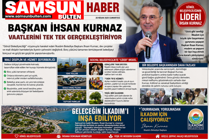 ETİKETLER: #İhsanKurnaz #İlkadımBelediyesi #Samsun #SamsunBülten #GönülBelediyeciliği #Haber #BelediyeHizmetleri #İlkadımdaHizmet #SamsunHaberleri #BaşarıHikayesi