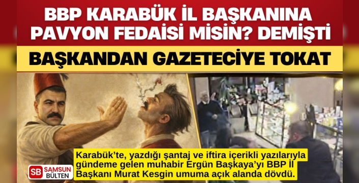 Karabük’te, yazdığı şantaj ve iftira içerikli yazılarıyla gündeme gelen muhabir Ergün Başkaya “Pavyon Fedaisi misin?” diyerek hakaret ettiği BBP İl Başkanı Murat Kesgin’in gazabına uğradı. Kesgin, Başkaya’yı umuma açık alanda dövdü.