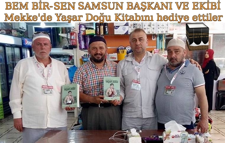 Umre görevini yerine getirmek üzere ekip halinde Suudi Arabistan'a giden Samsun Bem Bir-Sen Şube Başkanı Nurettin Sever Mekke'de market işleten Samsun/Kavaklı Şaban Bat'a Arş. Yazar Ahmet Seven'in kaleme aldığı Türk Güreşinin Sembolü Yaşar Doğu'nun hayatının anlatıldığı kitabı hediye etti.