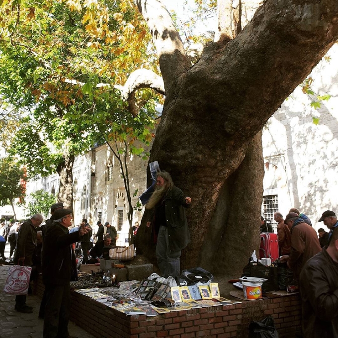 Hüseyin Avni Dede, "Burada genelde kendi şiir kitaplarımla, koleksiyon paralarını, değişik objeleri pazarlıyorum. Eskiden burada herkes bir şeyler satardı, oradan bir alışkanlık haline geldi. Geçit yoktu o zaman burada. Buradaki arkadaşları Topkapı'ya gönderdiler. Ben de gittim oraya ama 3 ay durabildim. Sonra tekrar buraya geldim. 1968 senesiydi. 1964'te buraya gelip babamın kitaplarını pazarlıyordum. Okul yıllarından itibaren buraya gelince o durum beni buraya bağladı, çocukluğum burada geçti. 10 yaşından beri buradayım şu anda da 68 yaşındayım. 58 senedir bu çınarın altındayım" dedi.