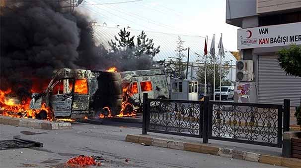 Kızılay'a ait kan toplama araçlarını ateşe veren teröristler, Vandallıklarını zafer olarakTwitter'dan paylaştı. Kurd24 isimli hesaptan araçların yanarken çekilmiş fotoğrafı "Van merkezde Kızılay'a ait üç araç imha edildi" ifadeleri ile paylaşıldı.