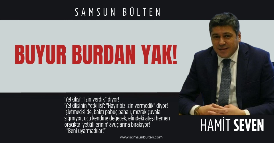 İşletmecisi de, baktı pabuç pahalı, mızrak çuvala sığmıyor, ucu kendine değecek, elindeki ateşi hemen oracıkta 'yetkililerinin' avuçlarına bırakıyor!