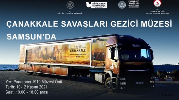 Tarihimizin en büyük direniş destanlarından birisi olan Çanakkale Zaferi'nin Ruhunu gelecek nesillerimize aktarmak ve bu önemli zaferin tarihi, kültürel ve manevi değerlerini yaşatmak için oluşturulan Çanakkale Savaşları Gezici Müzesi, 10-11-12 Kasım 2021 tarihlerinde Samsunda olacak.