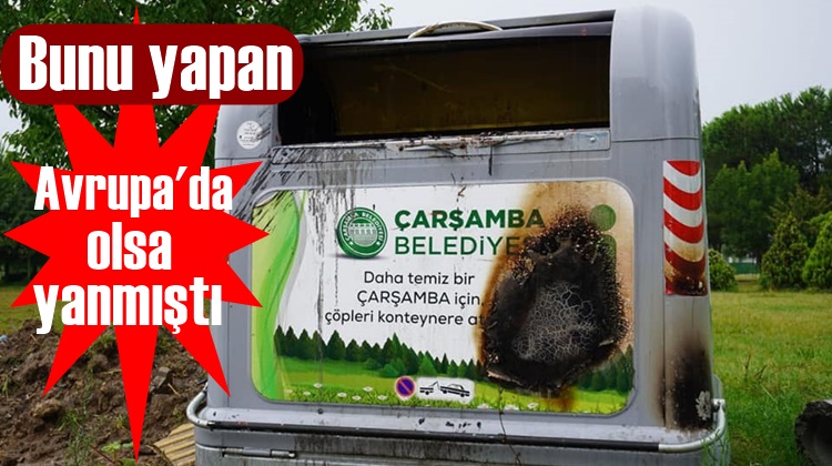 Çarşamba'da piknik yaptıktan sonra mangal kömürlerini konteynere atan piknikçiler konteyneri kullanamaz hale getirdi.