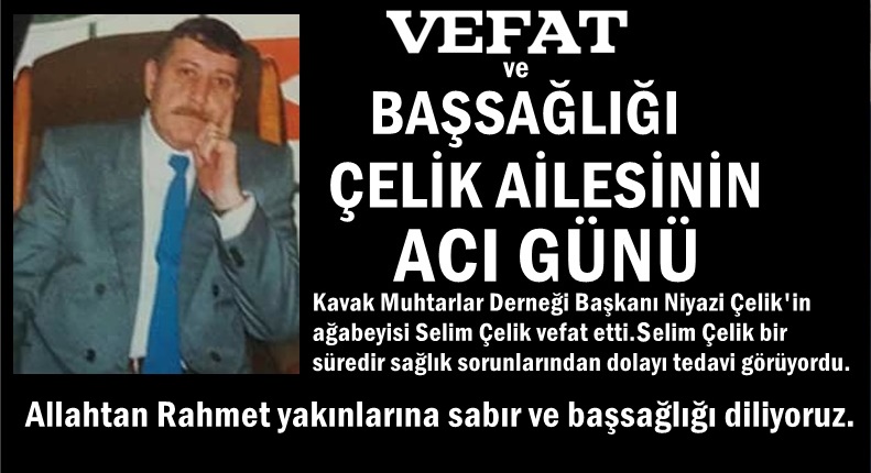 Selim Çelik'in Cenazesi 07.02.2018 Çarşamba günü öğle namazına müteakip Kavak İdrisli Mahallesinde defnedilecektir.