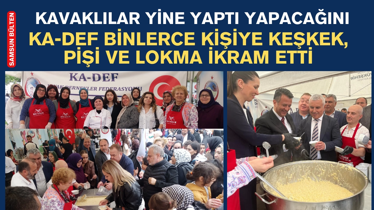 KA-DEF Standını AK Parti Genel Başkan Yardımcısı ve Samsun Milletvekili Çiğdem Karaaslan, Samsun Büyükşehir Belediye Başkanı Halit Doğan, AK Parti Samsun İl başkanı Mehmet Köse, İlkadım Belediye Başkanı İhsan Kurnaz, AK Parti İlkadım İlçe Başkanı Ersin Kasap KA-DEF Genel Başkanı Şerif Korkmaz'la birlikte vatandaşlara birlikte keşkek ve lokma ikramı yaptılar.
