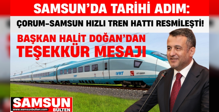 Samsun’un yıllardır beklediği dev ulaşım projesinde beklenen müjde geldi. Samsun Büyükşehir Belediye Başkanı Halit Doğan, Çorum–Samsun Hızlı Tren Hattı’nın 1. etap yapım işinin Resmî Gazete’de yayımlandığını duyurdu. Bu gelişme, şehrin hem ekonomik hem de lojistik geleceği için "yeni bir dönemin kapısı" olarak nitelendiriliyor.