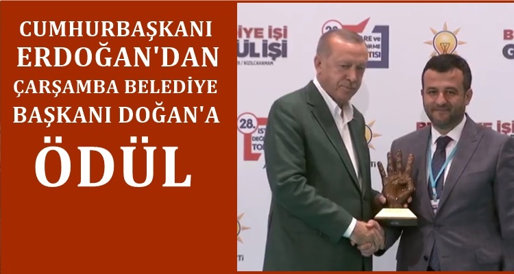 Cumhurbaşkanı ve AK Parti Genel Başkanı Recep Tayyip Erdoğan 31 Mart seçimlerinde aldığı oyla büyük başarı gösteren Çarşamba Belediye Başkanı Halit Doğana ödül verdi.