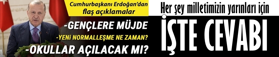 Cumhurbaşkanı Recep Tayyip Erdoğan 81 ilden 560 gençle video konferans yöntemiyle görüştü. Cumhurbaşkanı Erdoğan, "Sosyal yaşamla ilgili olarak bir süre daha hepimizin fedakarlık yapması gerekiyor. Bu salgını en kısa zamanda atlatıp normal hayatımıza döneceğimiz günlerin yakın olduğuna inanıyorum" dedi. Cumhurbaşkanı Erdoğan, "Okullar açılacak mı?" sorusuna "17 Mayıs itibarıyla başlayacak yeni normalleşme takvimimizi önümüzdeki günlerde açıklayacağız. İlk kabine toplantımızın en önemli gündem maddelerinden biri bu olacak. Bu takvimde okulların açılışıyla ilgili süreç de yer alacak" yanıtını verdi. Cumhurbaşkanı Erdoğan, "Buradan müjdeyi vermek istiyorum Artık gençlerimiz transkript belgelerini istedikleri yerden çift dilli olarak herhangi bir ücret ödemeden alabilecekler" ifadelerini kullandı.