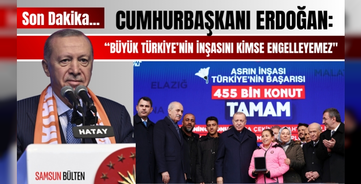 Törende yaptığı konuşmada Türkiye’nin gücüne ve kararlılığına dikkat çeken Cumhurbaşkanı Erdoğan, “Yeni Türkiye’nin, büyük Türkiye’nin inşasını hiç kimse engelleyemez. Bugün dünyada hemen hiçbir ülkenin altından kalkamayacağı büyük bir başarıya Hatay’ımızda bizzat tanıklık ettik,” ifadelerini kullandı.