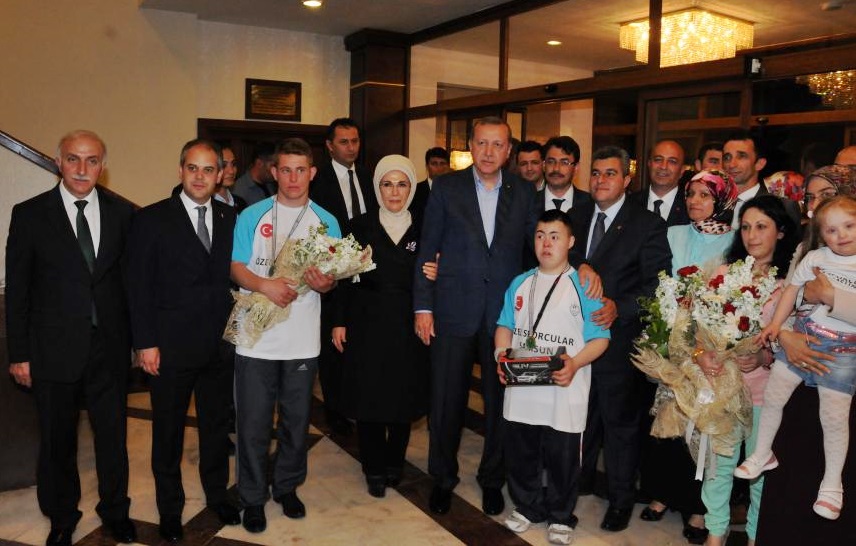Ziyaretin sonunda Samsun Valiliğinden ayrılan Cumhurbaşkanı Sayın Recep Tayyip ERDOĞAN, valilik çıkışında Türkiye Özel Sporcular Spor Federasyonu sporcularına madalyalarını taktı.