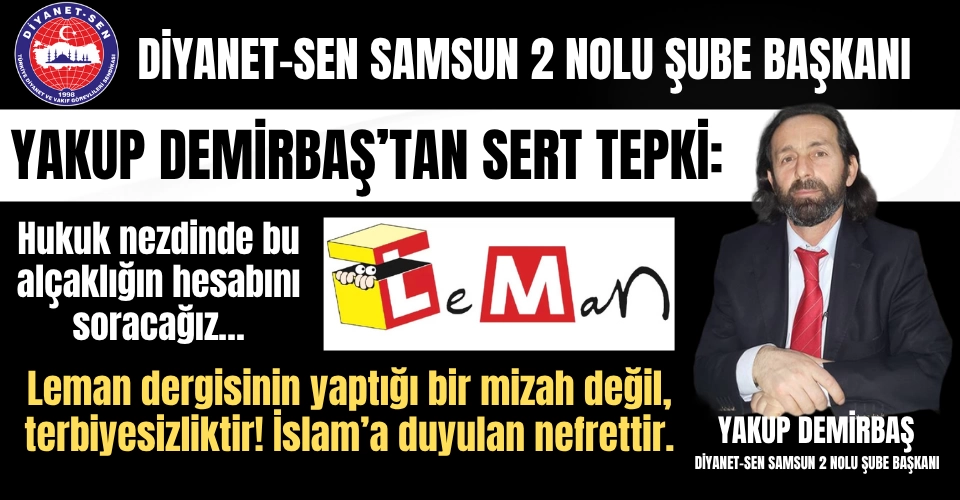 Diyanet-Sen Samsun 2 Nolu Şube Başkanı Yakup Demirbaş Leman Dergisine sert tepki gösterdi.