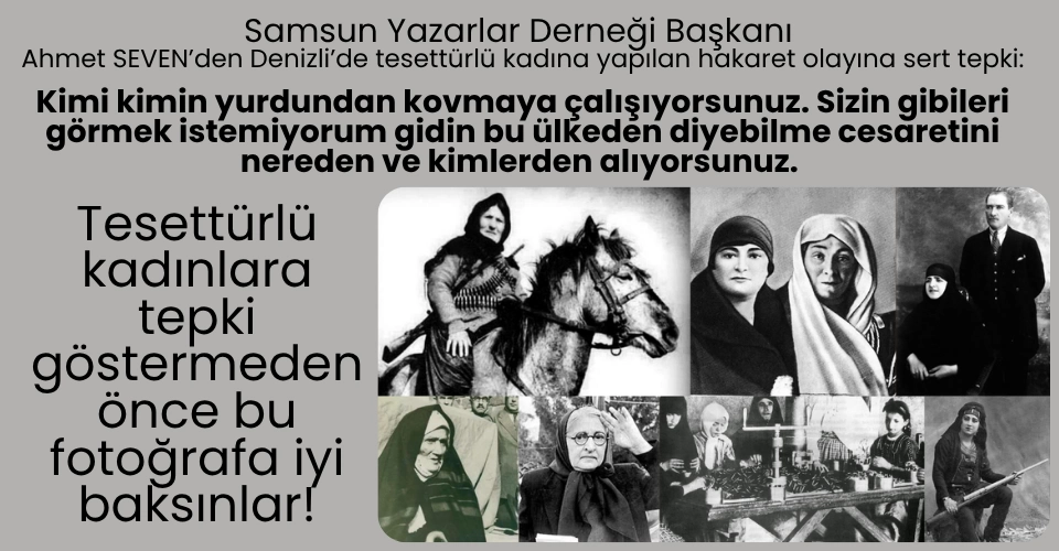 Samsun Yazarlar Derneği Başkanı Ahmet Seven'den sert tepki: Kimi kimin yurdundan kovmaya çalışıyorsunuz. Sizin gibileri görmek istemiyorum gidin bu ülkeden diyebilme cesaretini nereden ve kimlerden alıyorsunuz.