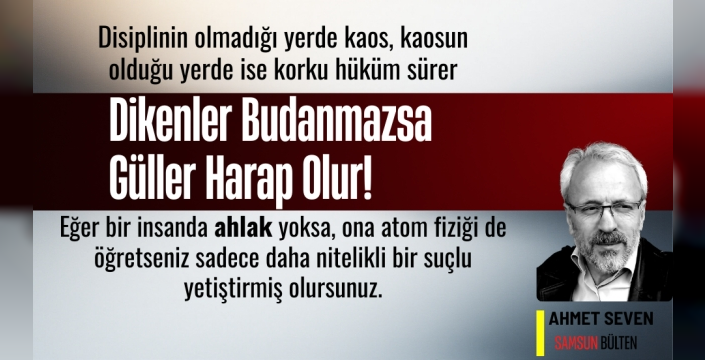 Unutmayalım ki; güllerin etrafında biten o arsız dikenler zamanında budanmazsa, sadece bahçıvanın elini kanatmakla kalmaz, o güzelim gül bahçesini de baştan başa harap eder.