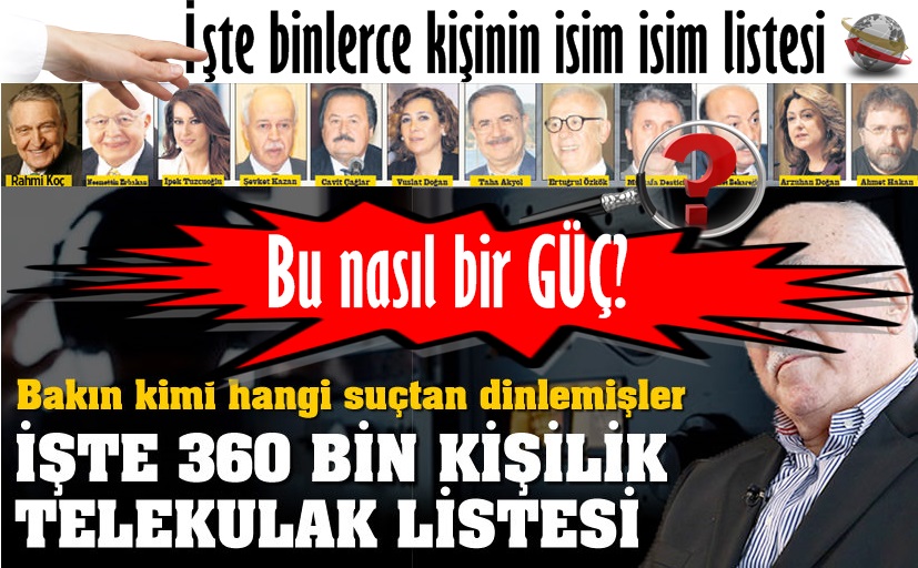 Paralel yapı devlet içinde en güçlü olduğu 2007-2012 arasında Türkiye tarihinin en büyük telekulak skandalını gerçekleştirdi. SABAH Özel İstihbarat Bölümü'nün ulaştığı belgelere göre dinlemeskandalında çok sayıda isim yer alıyor. Paralel Yapı'nın, Emniyet İstihbarat Daire Başkanlığı (İDB) ve Telekomünikasyon İletişim Başkanlığı'ndaki (TİB) kayıtlarını sildiği bu dinlemeler, kapatılan Özel Yetkili Ankara 11. Ağır Ceza Mahkemesi'nin arşivinde bulundu. HSYK Başmüfettişi Ali Rıza Karakan'ın yaptığı geniş kapsamlı araştırmaya göre telekulak dosyası 360 bin önleyici ve adli dinleme kararından oluşuyor. Dinlemeler; Mart 2006'da Emniyet İstihbarat Daire Başkanlığı'na atanan ve Haziran 2007'de kendi kadrosunu oluşturan Paralel Yapı'nın gözde polis şefi Ramazan Akyürek döneminde yaşandı. Bu süreçte tamamen sahte isimler, uydurma örgütler ve suçlar üzerinden siyasetçi, bürokrat ve askerler başta olmak üzere toplumun çeşitli kesimlerinden pek çok kişi dinlendi. Paralel Yapı'nın telefonlarını dinlediği en önemli kurum Genelkurmay Başkanlığı. Karargâh, 1 Ocak -31 Aralık 2009 arasında dinlenmiş. Ayrıca çeşitli kademelerinde görev yapan subay ve astsubayların, İBDA-C, organize suç ve Hizbullah örgütü kapsamında dinlendiği belgelerde yer alıyor. Eski Jandarma Genel Komutanı Fevzi Türkeri 2007'de dinlenen isimler arasında. Paralel Yapı'nın hedefindeki en önemli isim ise eski Başbakan Necmettin Erbakan. Erbakan, 2009'da Huzvullah Gültekin sahte ismiyle Hizbullah/İlim dosyası kapsamında dinlenilmiş. Eski AK Partili Abdüllatif Şener de 2007'de İBDA-C dosyası kapsamında teknik takibe alınmış.