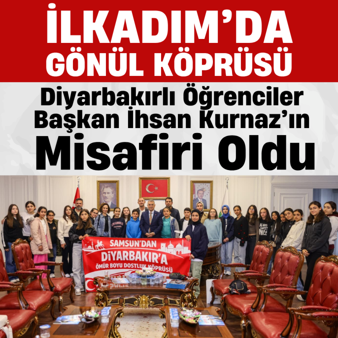 SAMSUN - İlkadım Belediye Başkanı İhsan Kurnaz, 23 Nisan Ulusal Egemenlik ve Çocuk Bayramı kutlamaları kapsamında Diyarbakır’dan Samsun’a gelen 26 öğrenciyi makamında ağırlayarak, güneydoğu ile kuzey arasında anlamlı bir gönül köprüsü kurdu.