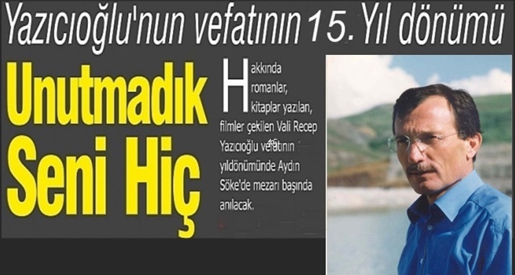 Vefatının 15. Yıldönümünde Vali Recep Yazıcıoğlunu rahmetle ve minnetle anıyoruz. Onu unutmadık unutturmayacağız. Milletine hizmetkar olan bir devlet adamı asla unutulamaz. Bizler onu Gençliğimize her zaman örnek rol model olarak anlatacağız.