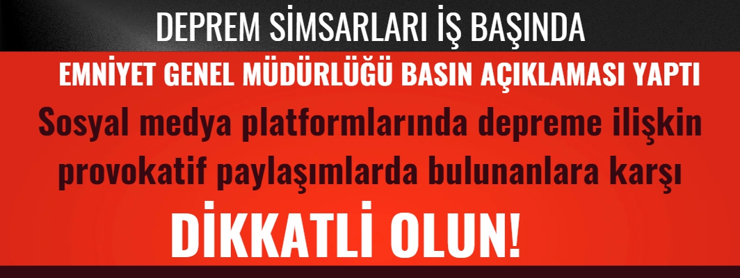 Emniyet Genel Müdürlüğü Sosyal medya platformlarında depreme ilişkin provokatif paylaşımlarda bulunanlar hakkında uyarıda bulunarak vatandaşlarımızın dikkatli olmasını istedi.