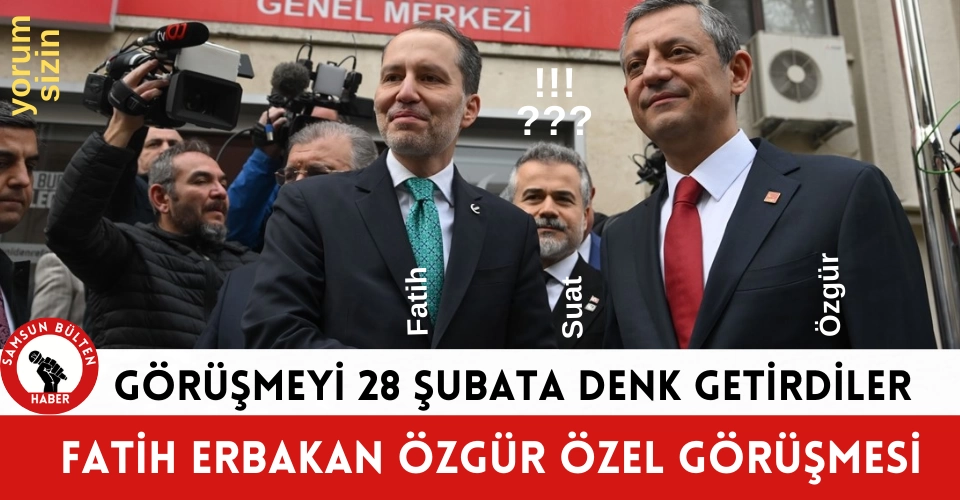 CHP Genel Başkanı Özgür Özel, Yeniden Refah Partisi Genel Başkanı Fatih Erbakan ile genel merkezde bir araya geldi. Yaklaşık bir saat süren görüşmenin ardından her iki lider de gazetecilere açıklamalarda bulundu.