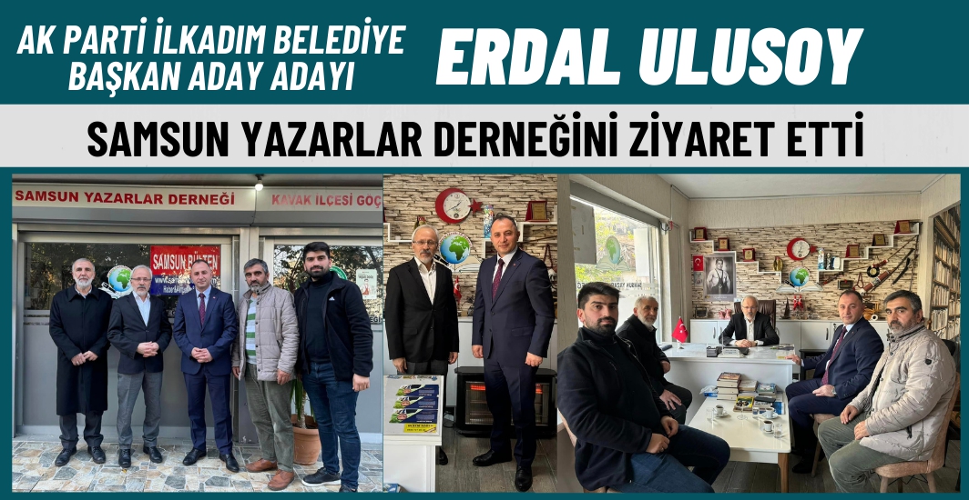 AK Parti İlkadım belediye Başkan Aday Adayı Erdal Ulusoy İlkadımda sürdürdüğü ziyaretler çerçevesinde Samsun Yazarlar Derneğini ziyaret ederek Dernek Başkanı Ahmet Seven'le görüştü.