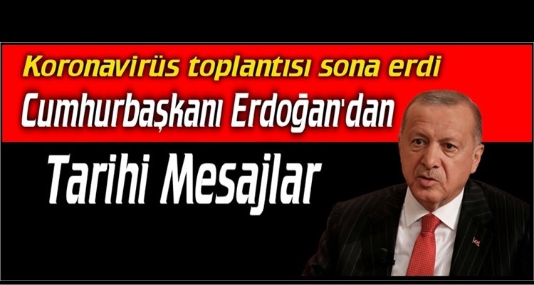 Alınan kararların millete ve ekonomiye hayırlı olmasını dileyen Erdoğan, "Hiçbir virüsün Türkiye'den, Türk milletinin birliğinden, beraberliğinden, kardeşliğinden, aldığımız ve alacağımız tedbirlerden daha büyük olamayacağını tekrar ederek, hepinize sevgilerimi, saygılarımı sunuyorum." ifadesini kullandı.
