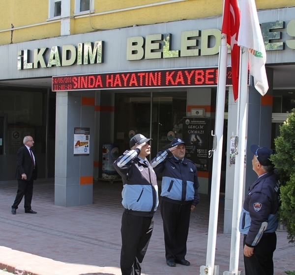 "Manisa'nın Soma ilçesinde yaşanan ve Türkiye'yi hüzne boğan maden faciası nedeniyle üç günlük milli yas edilmesinin ardından İlkadım Belediye Başkanı Erdoğan Tok'un talimatıyla belediye hizmet binaları, kültür merkezleri ve düğün salonları önünde bulunan bayraklar yarıya indirildi.