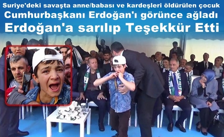 Suriye'deki savaşta anne babası ve 2 kardeşi öldürülen 12 yaşındaki Suriyeli Abdullah, Cumhurbaşkanı Recep Tayyip Erdoğan'a sarılıp teşekkür etti.