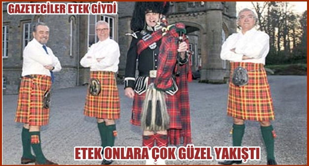 Türk basının önemli kalemleri Ertuğrul Özkök, Mehmet Yılmaz ve Güneri Cıvaoğlu, İskoçya'da ulusal kıyafet kilot giyip hatıra fotoğrafı çektirdiler.