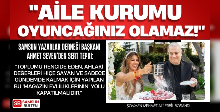 SAMSUN – Samsun Yazarlar Derneği Başkanı Ahmet Seven, son günlerde magazin gündeminden düşmeyen Mehmet Ali Erbil’in evlilik ve boşanma süreçlerine ilişkin zehir zemberek açıklamalarda bulundu. Seven, 2026 yılının "Aile Yılı" ilan edildiğini hatırlatarak, aile kurumunu yıpratan bu tür olaylara karşı caydırıcı önlemler alınması gerektiğini vurguladı.