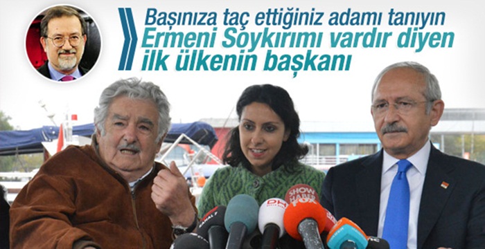 Başımıza neredeyse tâc ettiğimiz Sinyor Mujica, Soykırım Komitesi'nin faal bir üyesidir; Türkiye'ye bazı CHP'li belediyeler ile sivil toplum kuruluşlarının davetlisi olarak gelmiştir ve Cumhuriyet Halk Partisi'nin "Çağdaş Türkiye İçin Değişim" başlıklı programında "CHP, sözde Ermeni soykırımı iddiası ile ülkemizin haksız önyargılarla suçlanmasına karşı bugüne kadar partimiz öncülüğünde sürdürülen kararlı duruşa sahip çıkmaya devam edecektir" diye yazar...
