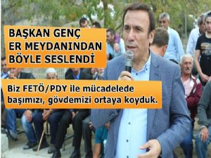 Türk halkının 15 Temmuz gecesinde, 1915 yılında "Çanakkale geçilemez" diyen ecdadın torunları olarak "Türkiye geçilemez" dediğini belirten Başkan Genç, "Ülkemiz zor bir süreçten geçiyor. Bunun farkında olmak zorundayız. 15 Temmuz gecesinde hangi partiden olursa olsun her görüşten insan 'mesele vatansa gerisi teferruattır' diyerek, bu alçaklara karşı dik duruş göstermiş, milletin, vatanın parçalanmasını önlemiştir. Görüşümüz, fikrimiz ne olursa olsun vatan savunmasını birlikte yapacağız, bir ve diri olacağız. Bu Gülenizm dinidir. İslam'ın dışında yeni bir din icat etmiştir bunlar. Kanımızdan, canımızdan da olsa bunlarla ilişkisi olanları hukukun önüne getirmek zorundayız. 2014 yılının başından itibaren bu yapının ne kadar alçak olduğunu anlattık. Bu şehirde bunu 2014'ten beri seslendiren tek siyasetçiyim, 15 Temmuz'dan sonra konuşan biri değilim. Bu şehirde hepimiz açıkgöz olmak, dik durmak zorundayız" diye konuştu.