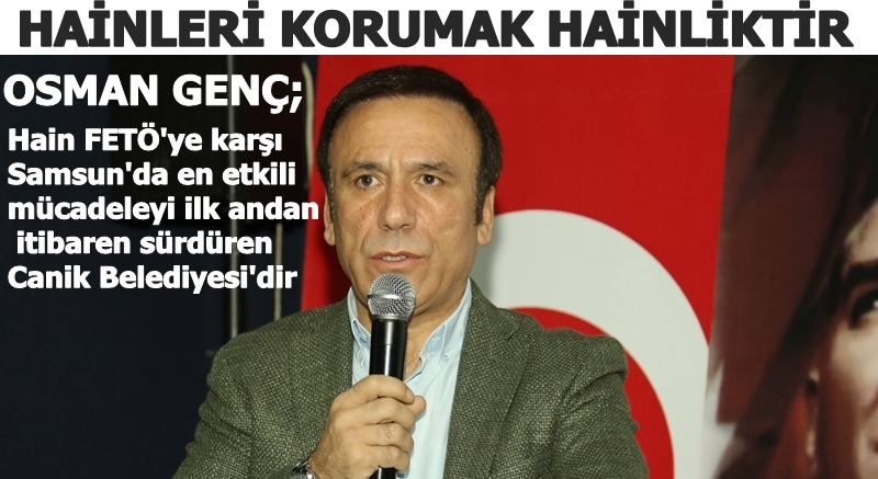 FETÖ/PYD terör örgütü ile mücadelenin bir vatan meselesi olduğuna dikkat çeken Başkan Osman Genç, "Bize göre hainleri korumak, saklamak da en büyük hainliktir. Hain FETÖ'ye karşı Samsun'da en etkili mücadeleyi ilk andan itibaren sürdüren Canik Belediyesi'dir, biziz. Aynı kandan, candan da olsak kim hainse onu gözünün yaşına bakmadan devlete teslim etmek zorundayız. Aksi durumda vatanımıza, milletimize, çocuklarımıza ve geleceğimize karşı en büyük kötülüğü yapmış oluruz. Temsil ettiğim misyon, vatan, millet sevgim bakımından, Yeni Türkiye'nin yoluna mayın döşeyen hainlerin karşısına Mısır'daki Rabia meydanında şehit düşen Esma gibi dikilmek, aziz milletimin daima yanında olmak benim boynumun borcudur" dedi.
